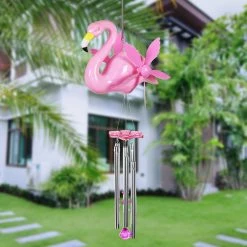 - Beautifully hand painted spinning Flamingo Wind Chime