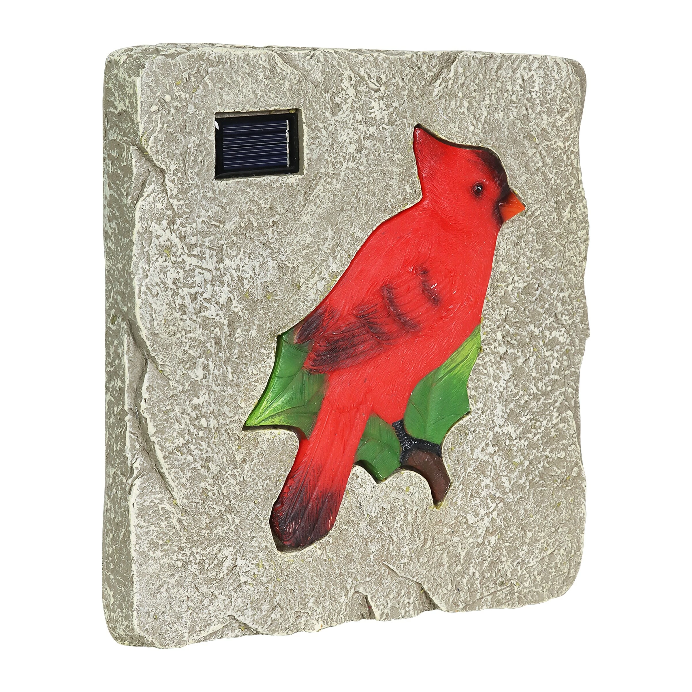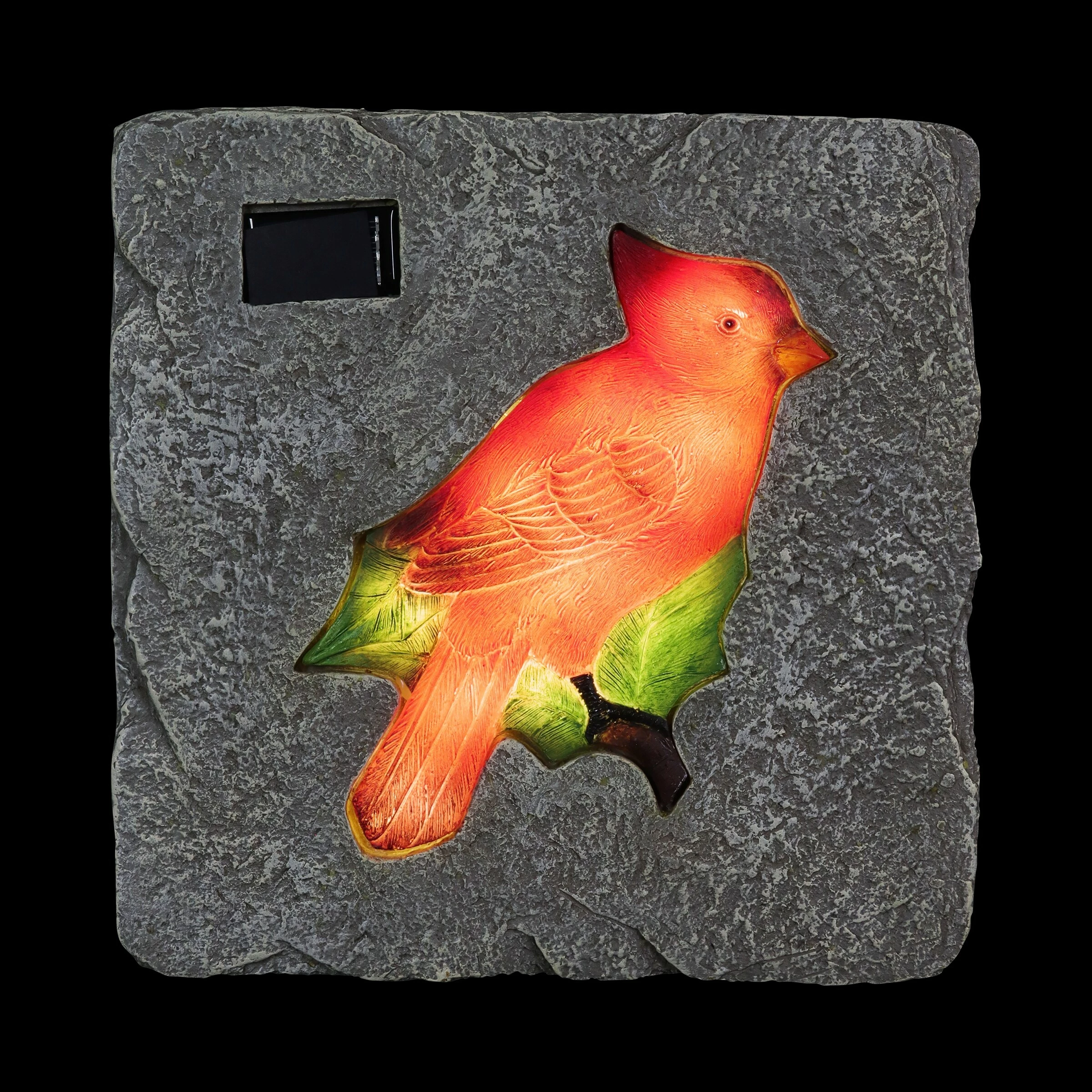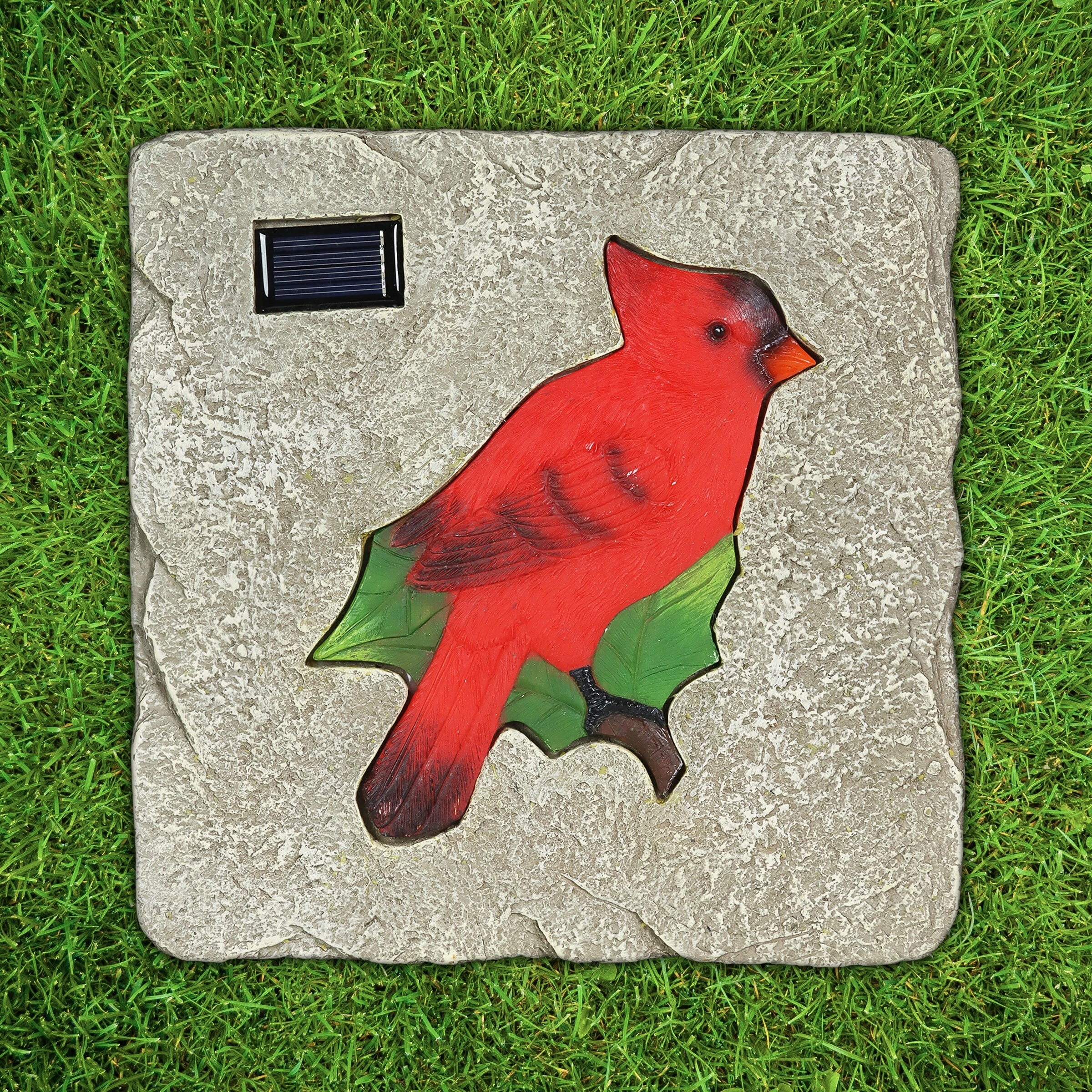A stunning red cardinal will illuminate from within this garden stepping stone with solar powered LED light! Designed to look like cement, this stone is made of durable resin so it is easy to place and maintain. Add a touch of magical charm to your garden with a beautifully crafted Garden Stepping Stone!