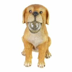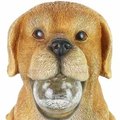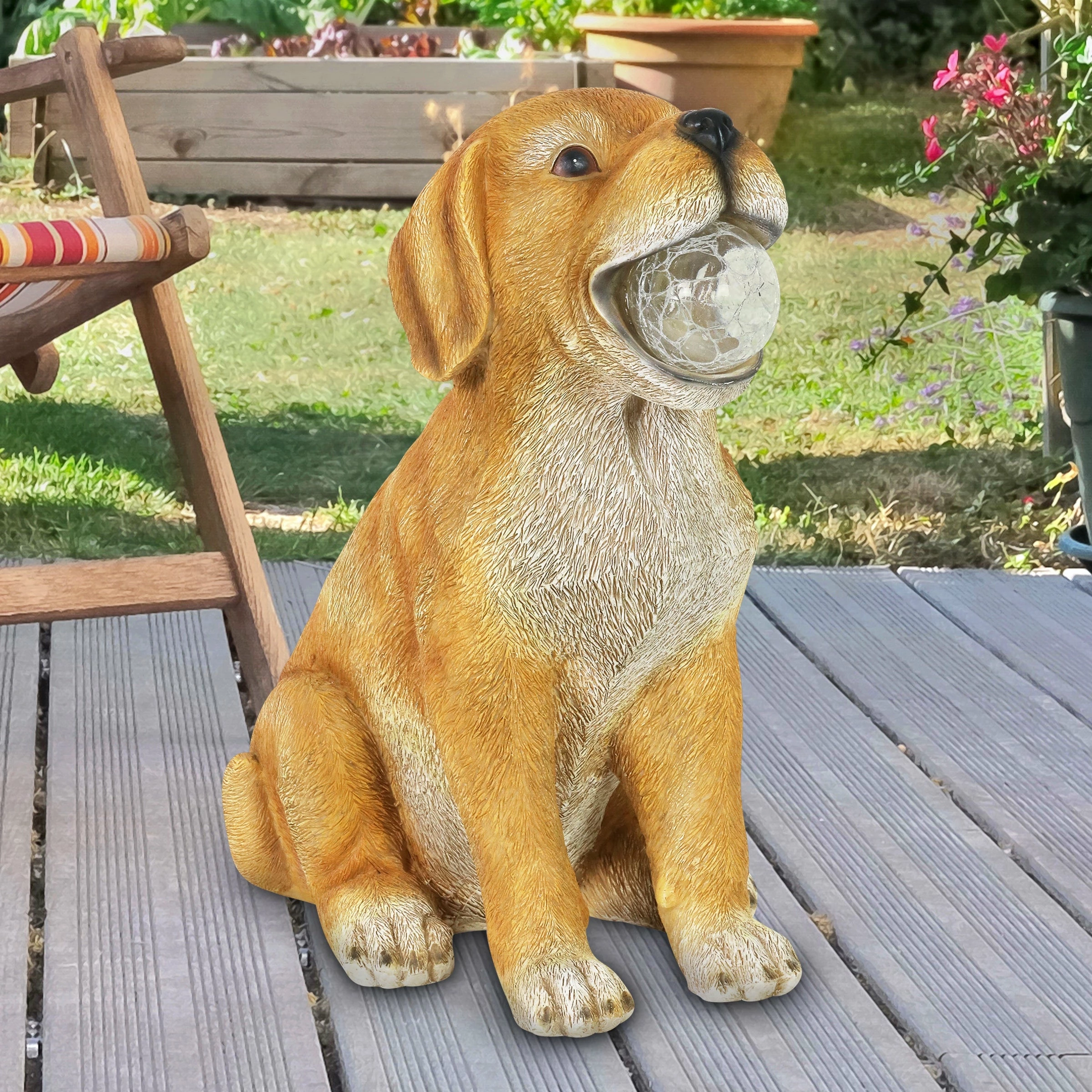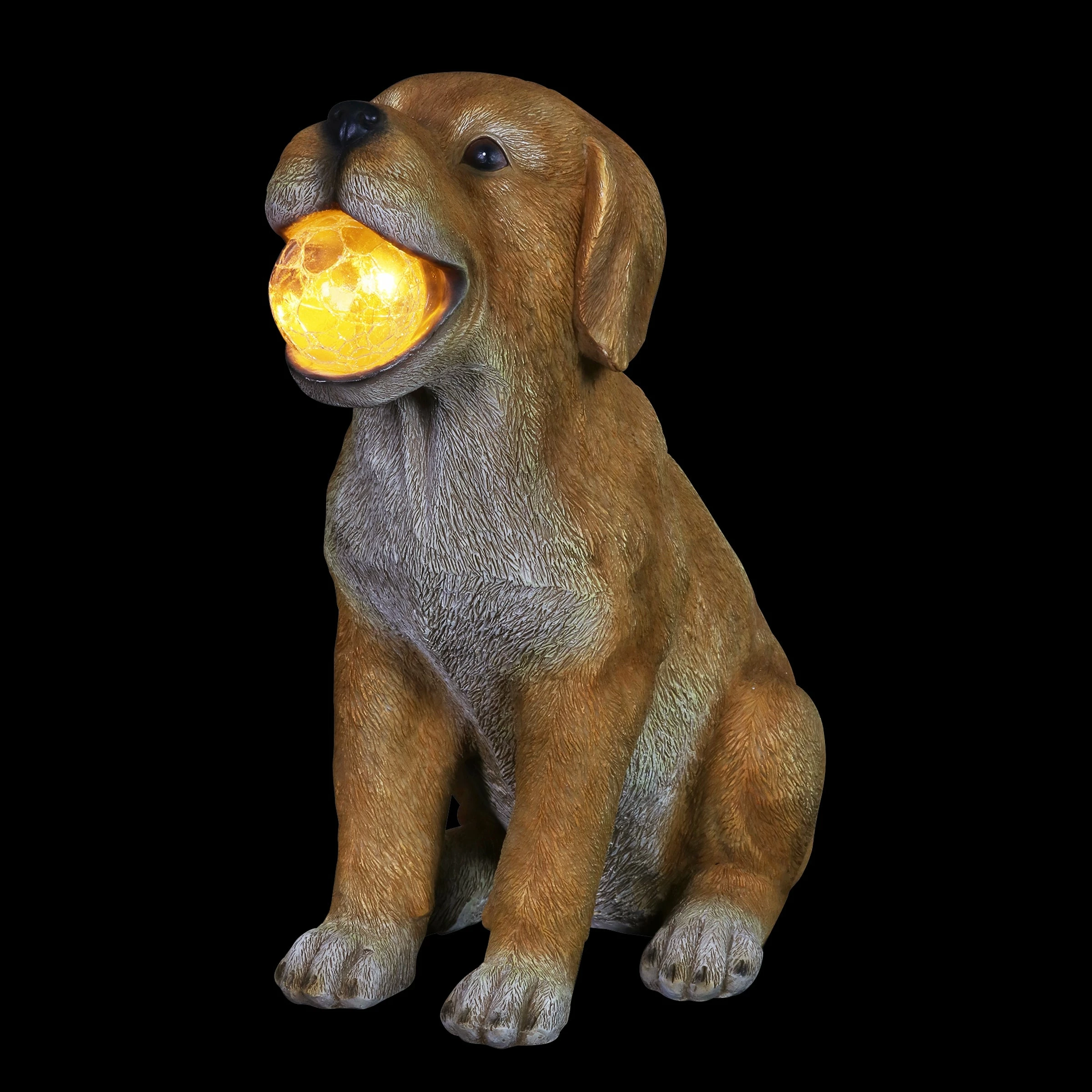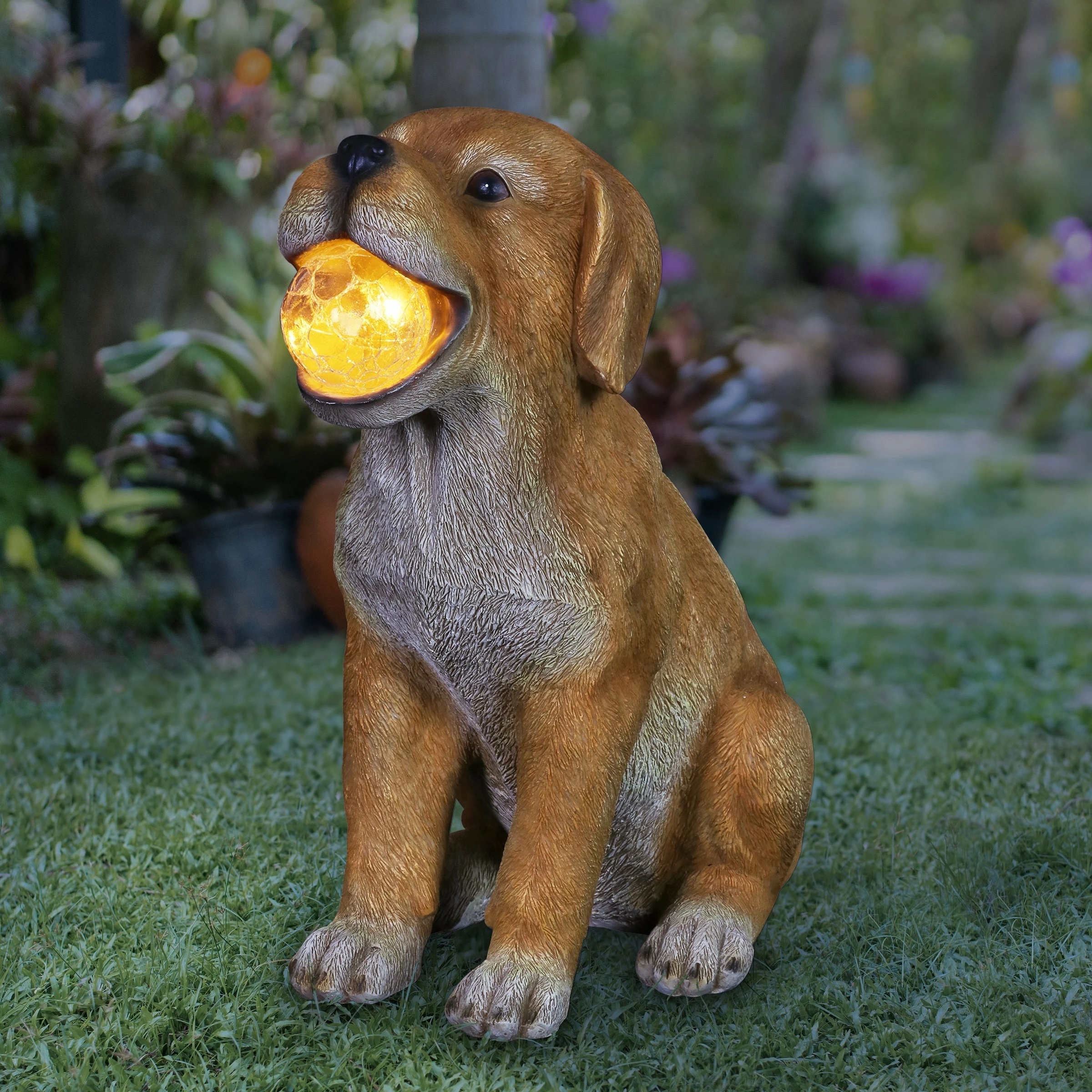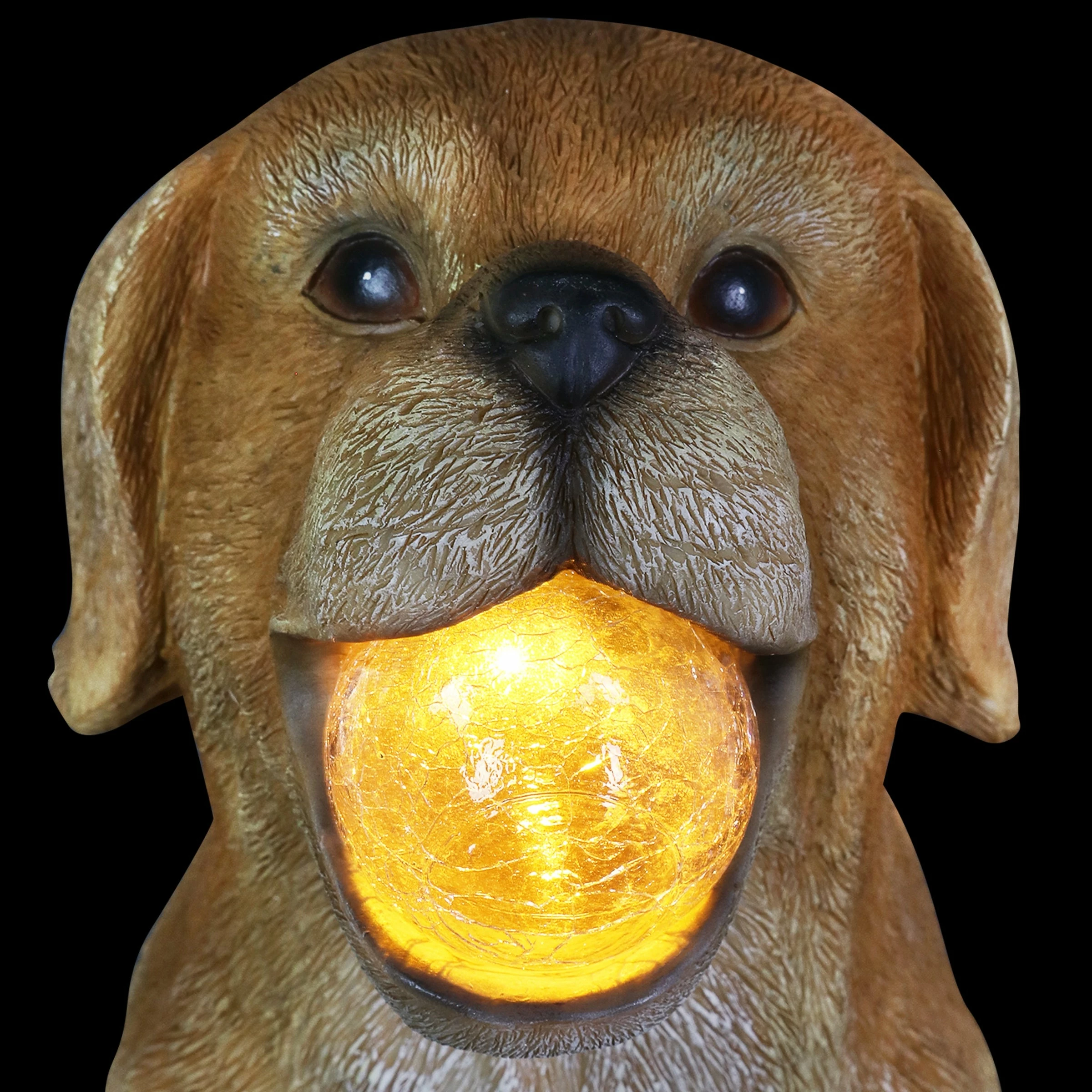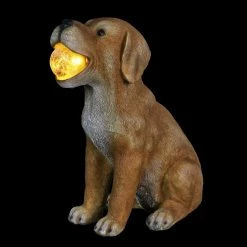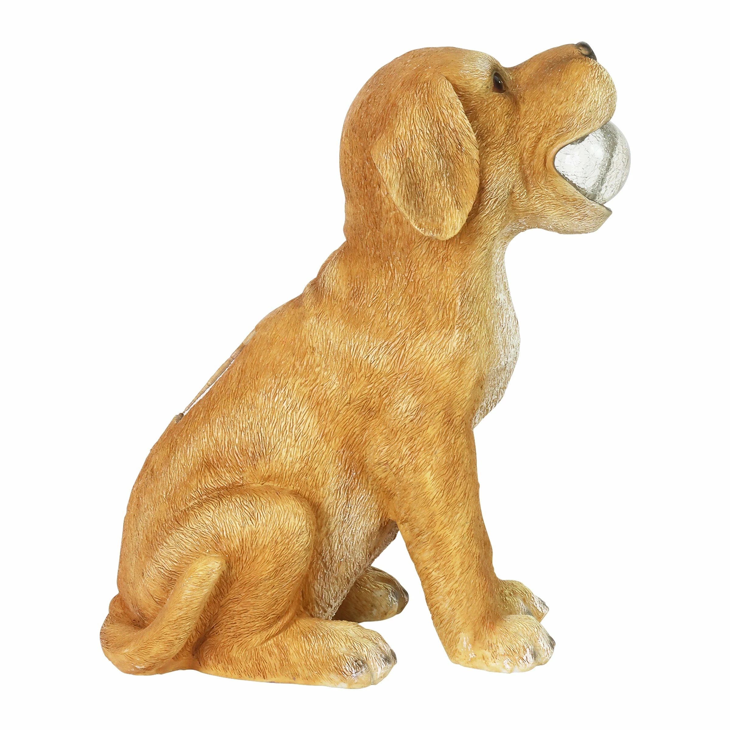 That dog never stops playing fetch! This adorable hand painted dog holds his illuminating ball in his mouth. At dusk his ball will automatically glow with solar powered LED light, bringing this endearing garden art to life. Makes a wonderful addition to any garden and a great gift for the animal lover in your life!