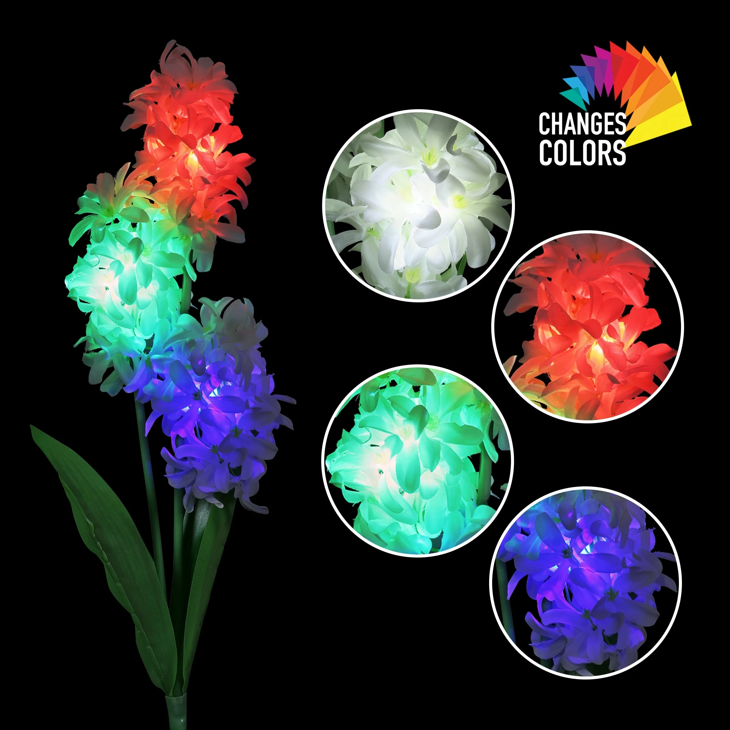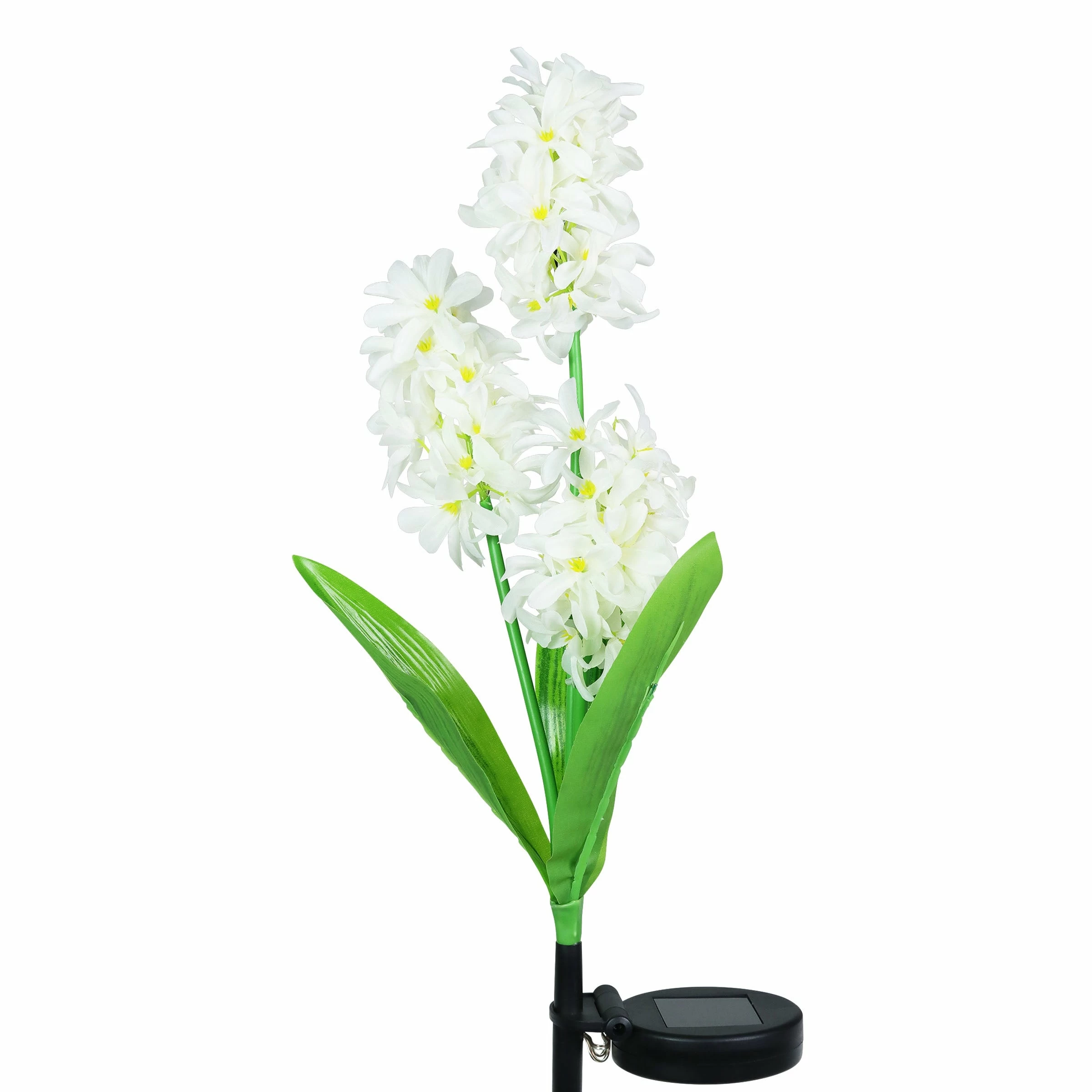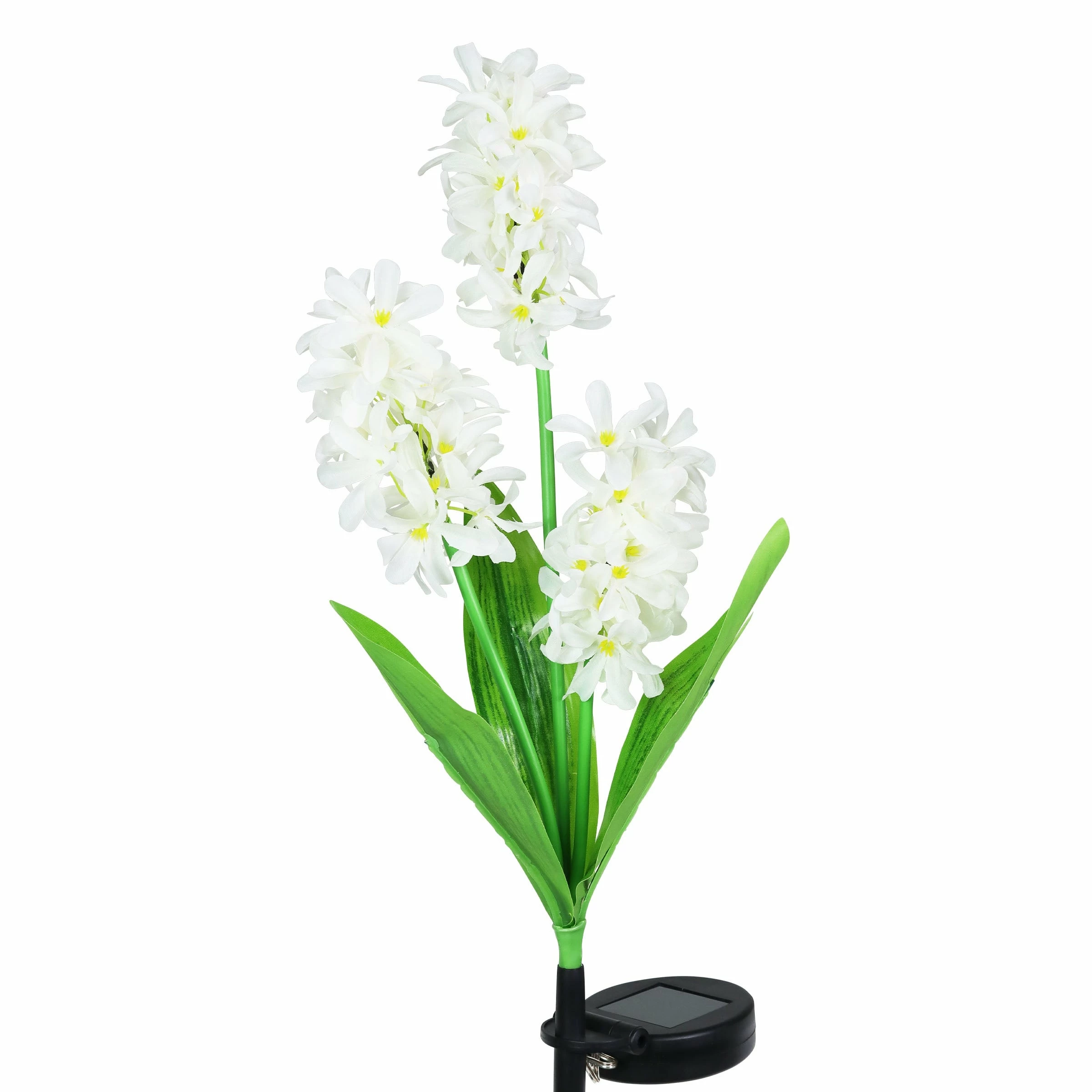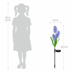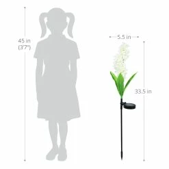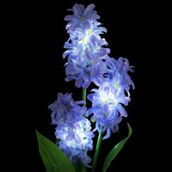 This beautifully crafted lilac flower stake will stay in bloom all year long! Each of the three fabric lilac clusters will illuminate with solar powered LED lights! This enchanting garden stake is sure to add joy to your garden. Makes a wonderful gift idea as well.