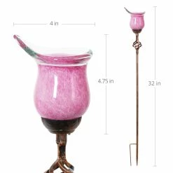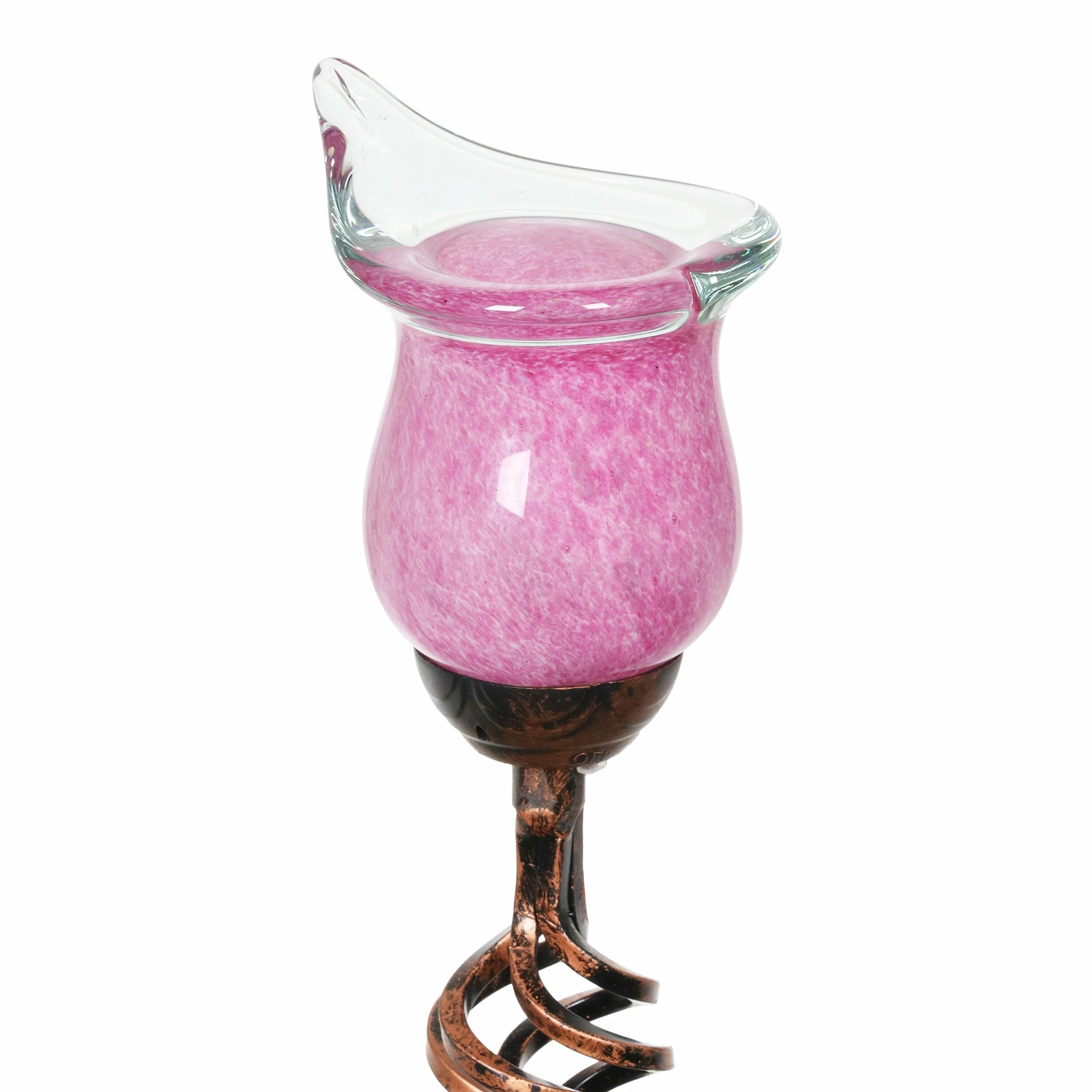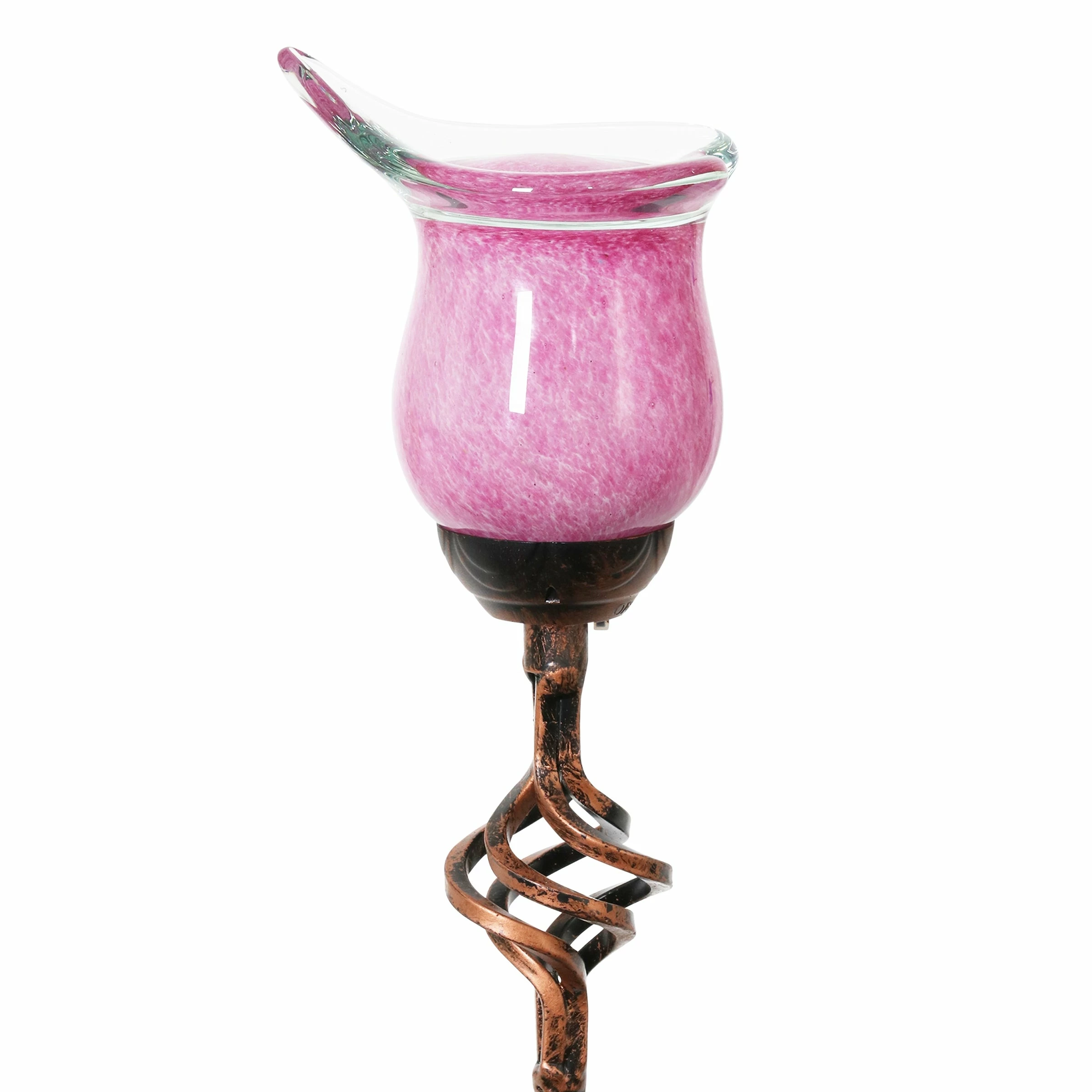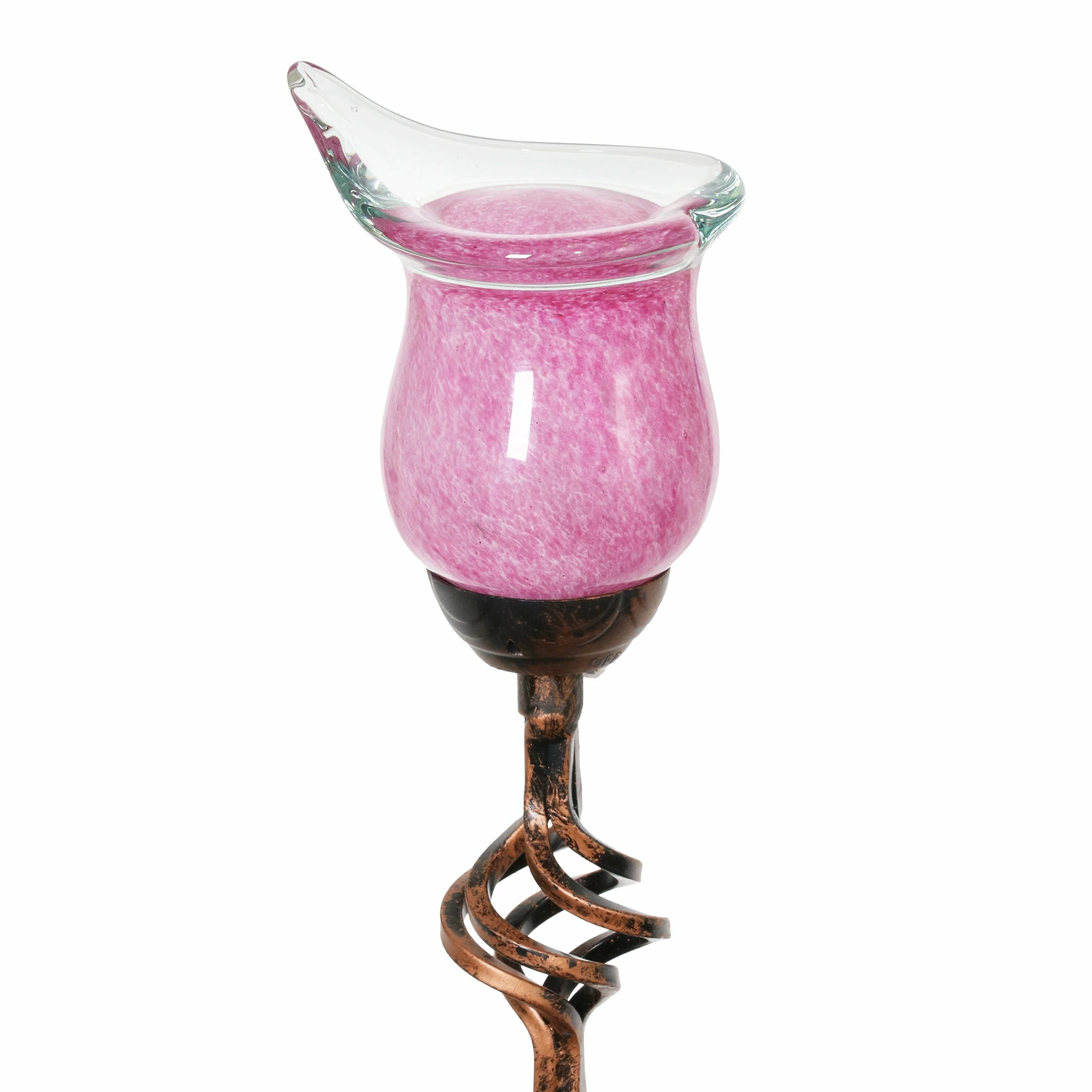 Create an elegant and colorful garden with glowing solar garden stakes! A glass calla lily stake adds a touch of beauty and romance to your garden day and night, all year long. This illuminating flower not only glows at night, but it is always in bloom, year round, no watering required. It is crafted in beautiful, hand-blown glass with a spiraling metal finial detail. With an energy efficient solar panel, this garden stake will charge in the sun during the day and automatically glow at dusk. It’s what we like to call, effortless elegance! Makes a wonderful addition to any home and a fabulous gift idea too.