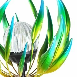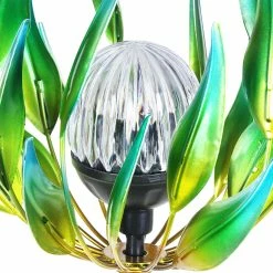 A beautifully hand-painted Metal Flower Spinner Stake with a solar-powered LED ball center adds an elegant pop of color, light, and motion to your garden! The colorful petals will spin with a gentle breeze around the elegant ball in the center. An absolutely charming addition to your home and a great gift idea.