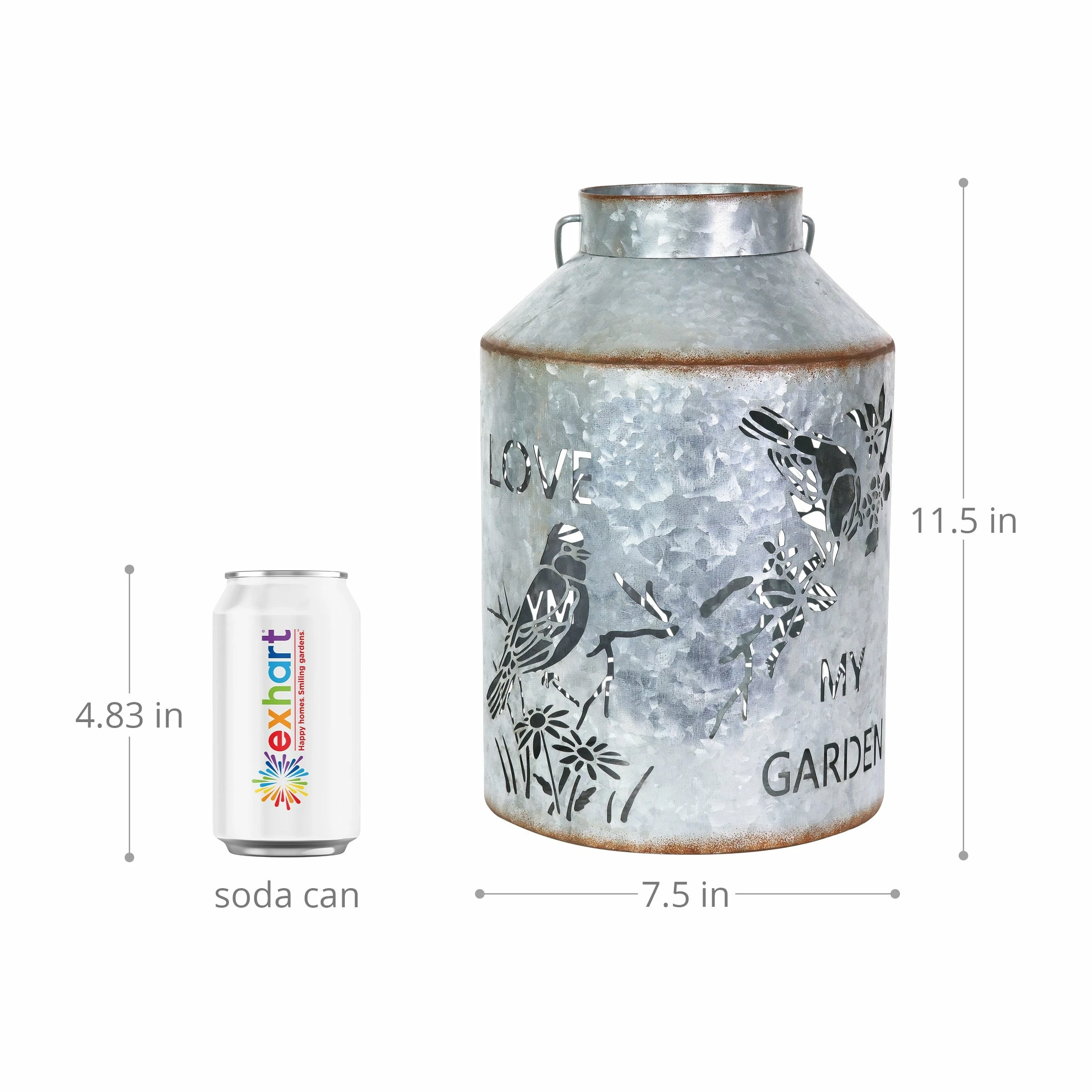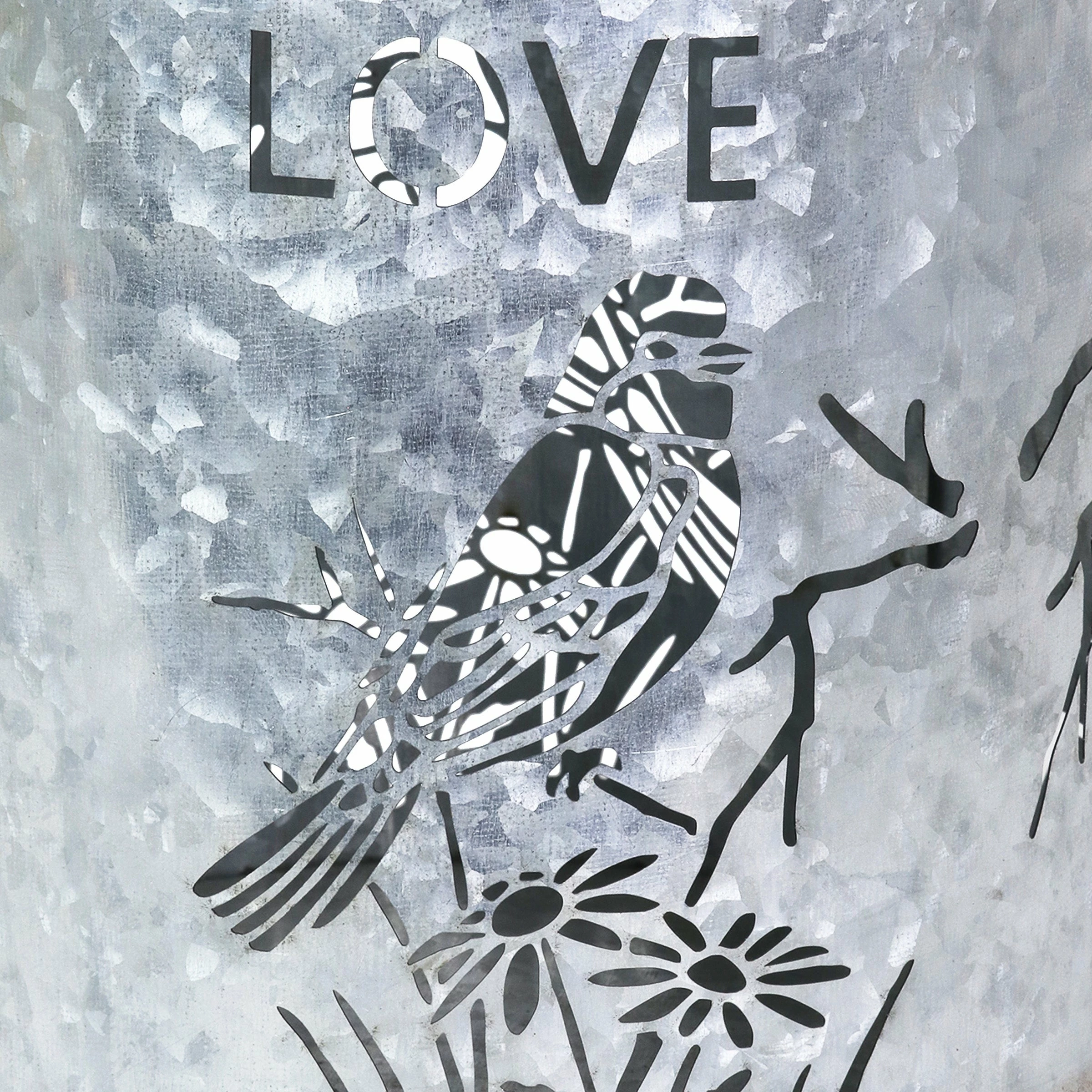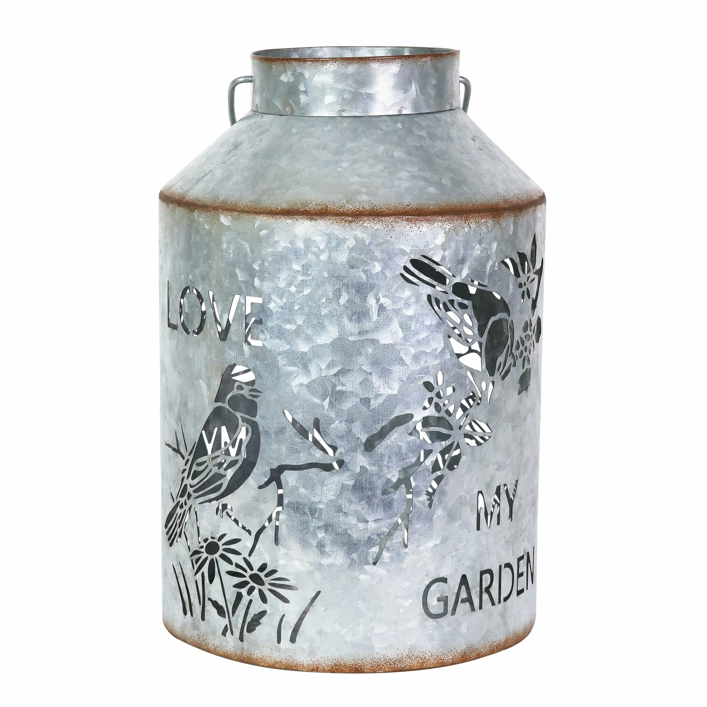 A beautiful stamped metal bird on a branch design will illuminate from within this decorative rustic lantern. As the LED light automatically glows at dusk, so will the message “MY GARDEN”! Makes a heartwarming addition to your garden and a wonderful gift idea too!