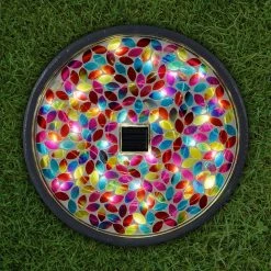 Hot Sale 😍 Outlet 🥰 Exhart Solar Mosaic Glass Leaf Design In Cement Stone, 10.5 Inches ⭐ ⌛