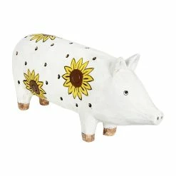 Hot Sale 😉 Outlet 😀 Exhart White Pig With Yellow Sunflowers Statue, 12 By 5.5 Inches 🔥 ✨