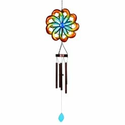 Hot Sale 🧨 New 🔥 Exhart Large Rainbow Dual Spinner Metal Wind Chime, 13 By 47 Inches 😍 🔔