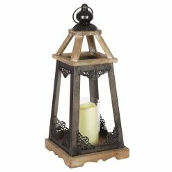 Top 10 👏 Discount 🤩 Exhart Wood And Metal Tabletop Lantern With LED Candle On A Battery Timer 🔔 ⌛